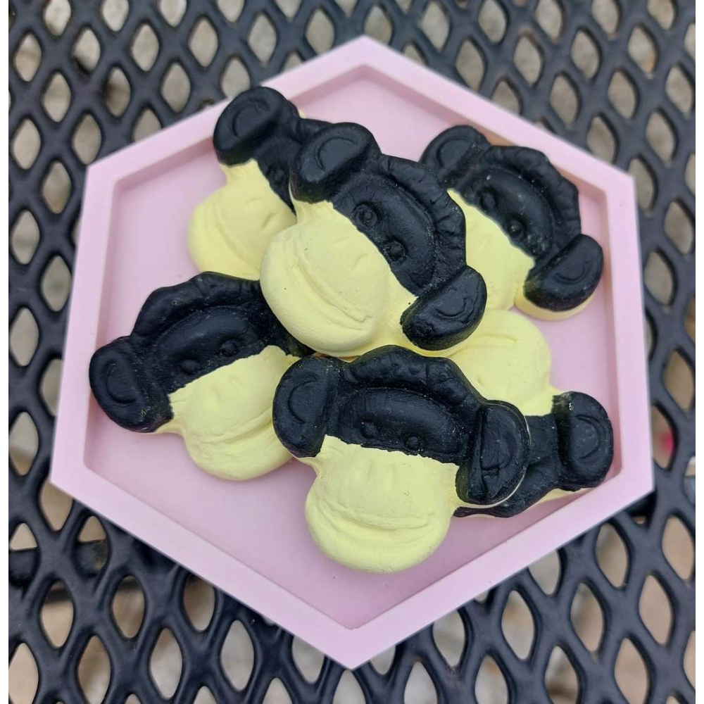 Onze namaak Apekoppen hebben het uiterlijk van echte snoepjes, maar zijn niet bedoeld om te worden gegeten. Ze zijn gemaakt van hoogwaardige materialen en hebben de vorm van schattige apenhoofdjes die de aandacht trekken. Plaats ze in een snoeppot op een feestje of evenement om een glimlach op de gezichten van je gasten te toveren, of gebruik ze als decoratieve elementen in je huis om een vleugje speelsheid toe te voegen.