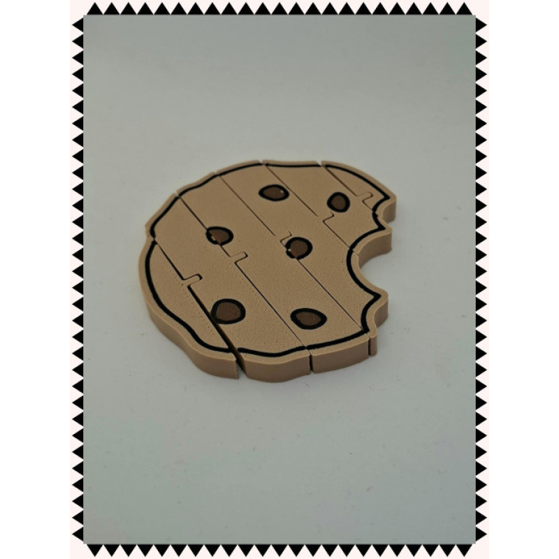 Ons 3D-geprinte koekje ziet eruit als een heerlijk realistisch koekje, maar is volledig niet eetbaar. Je kunt het gebruiken als decoratie, maar ook gewoon in de hand nemen om mee te spelen. Het bewegen van het koekje kan bovendien een rustgevend en ontspannend effect geven – ideaal als fidget speeltje.