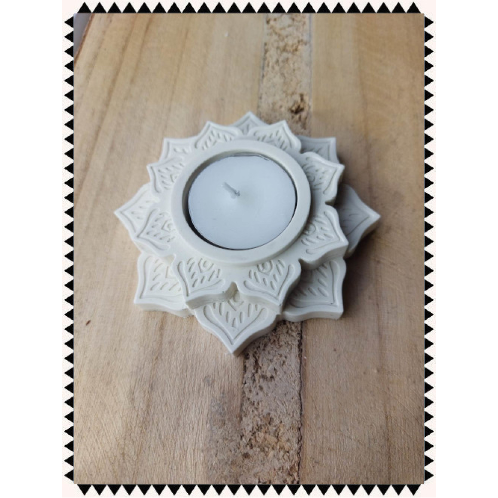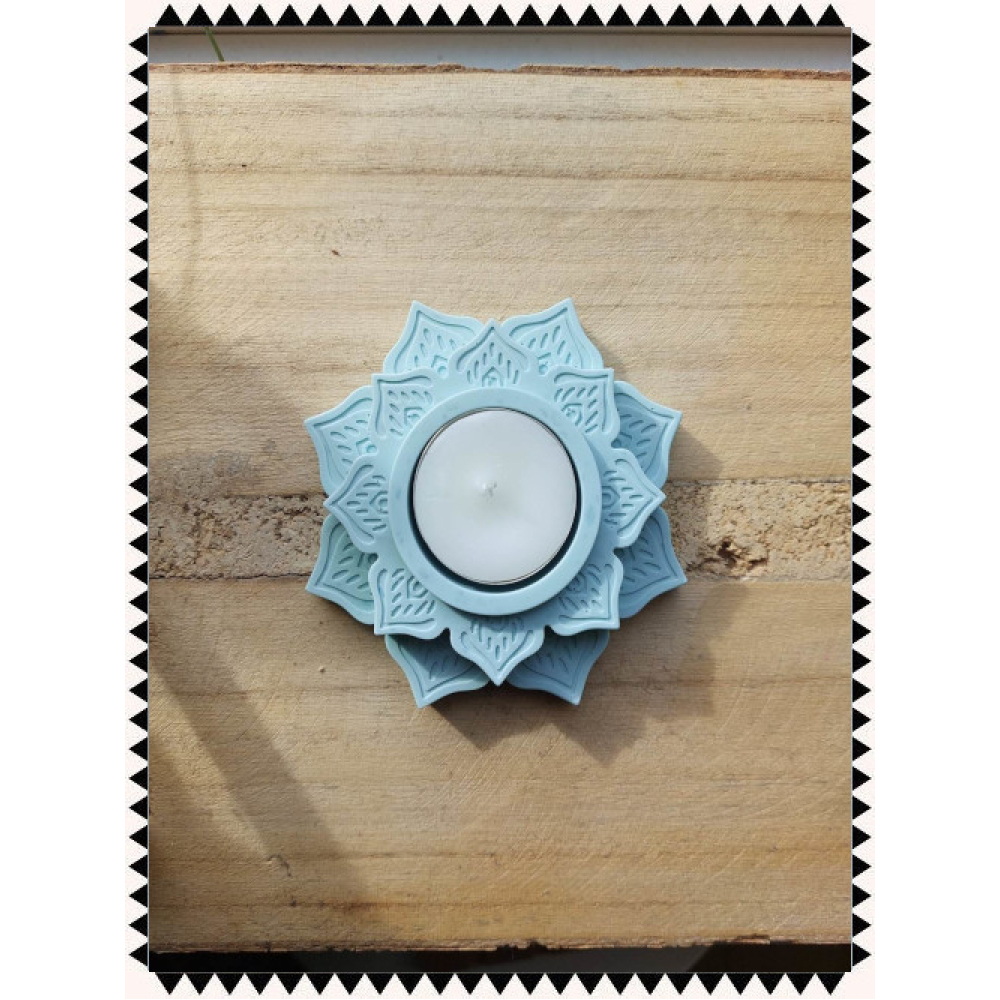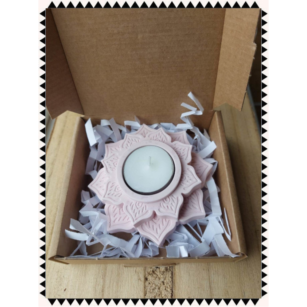 Een waxinelichthouder in de vorm van een lotusbloem.