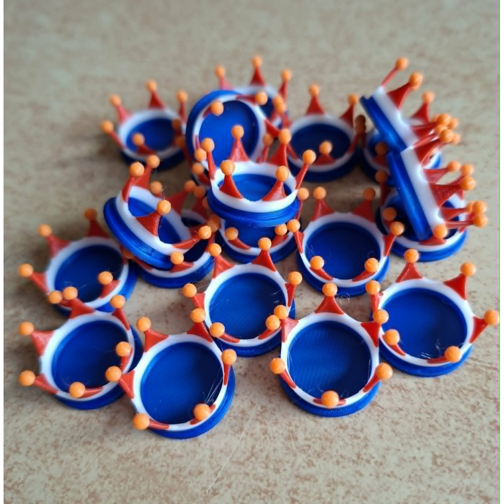 Decoratieve kroon in rood-wit-blauw, geschikt om op een haarelastiekje of haarspeldje te bevestigen. Ideaal voor Koningsdag en de Koningsspelen.