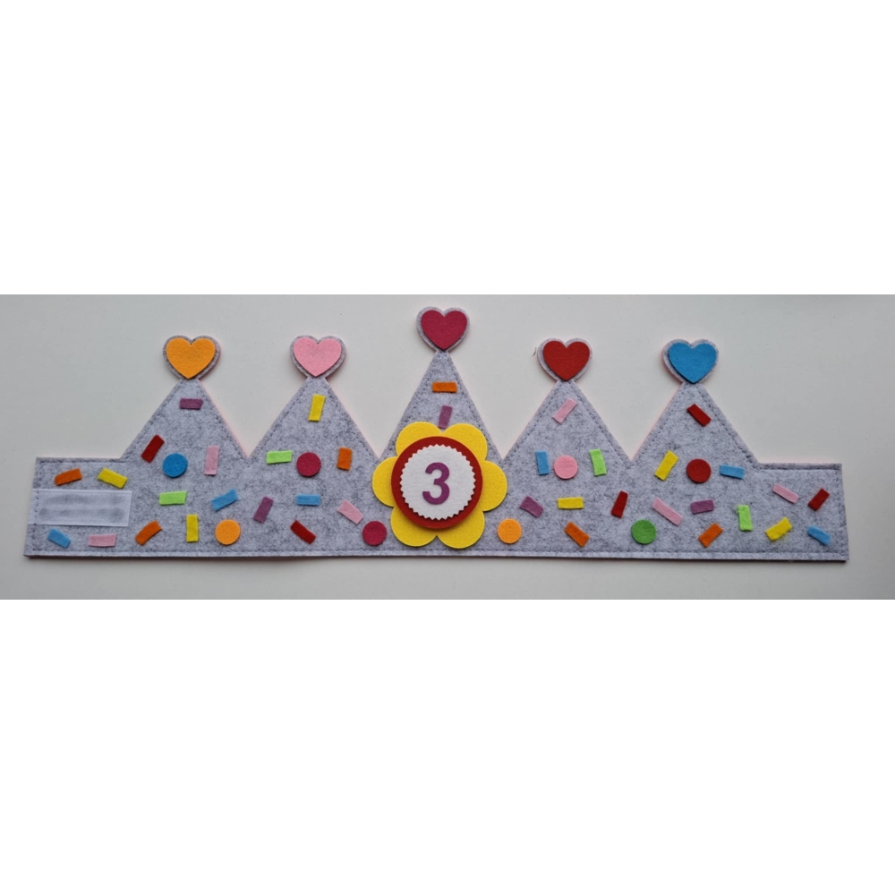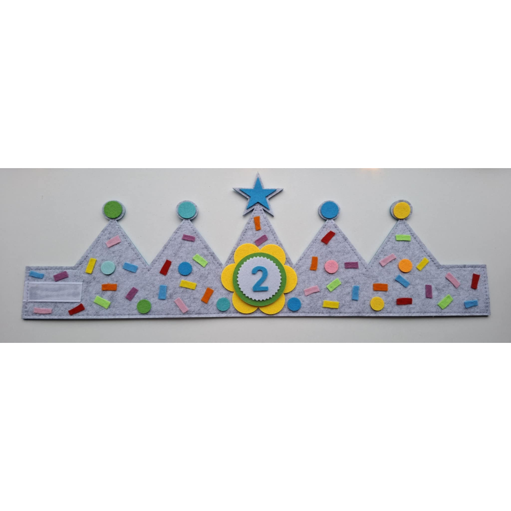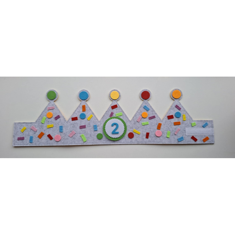Maak elke verjaardag extra feestelijk met deze vrolijke verjaardagskroon van vilt. De kroon is versierd met vrolijke confettie wat zorgt voor een echte feestuitstraling.