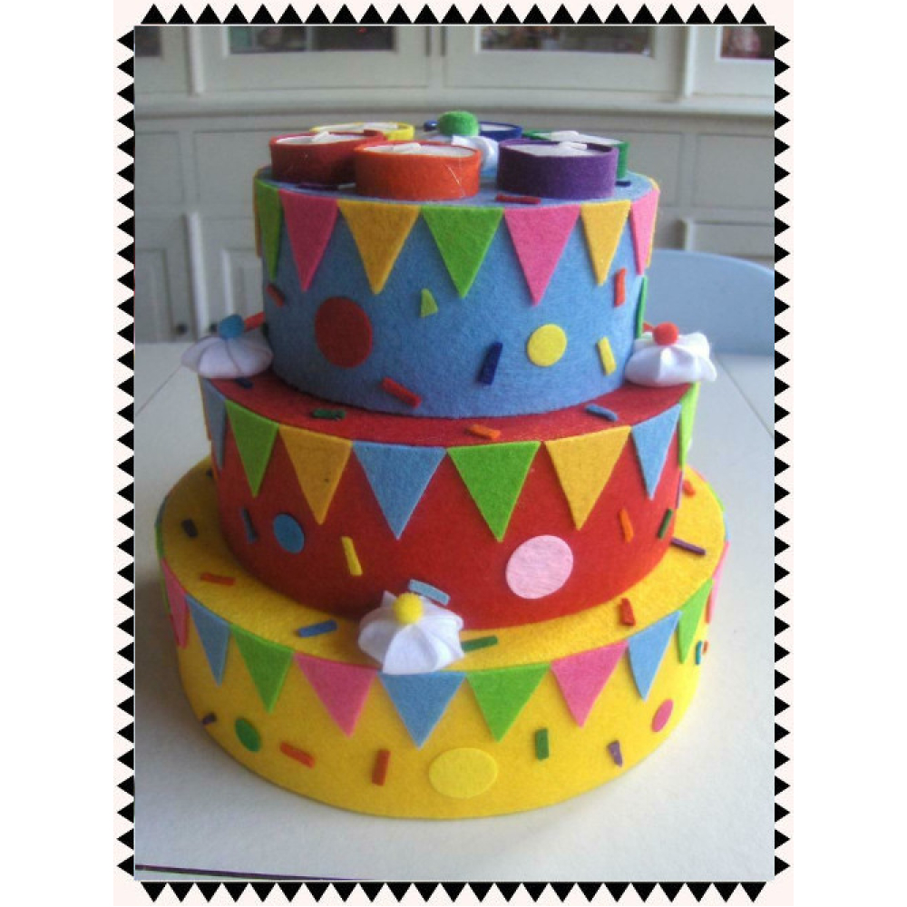 Deze feestelijke verjaardag taart van vilt gaat jaren mee. Deze vrolijke taart staat ontzettend leuk in de klas, peuterspeelzaal en peuterspeelzaal. Allemaal blije gezichtjes van de kinderen als ze de klas binnen komen. Het is weer feest! Maar de taart kan natuurlijk ook gewoon thuis gebruikt worden.