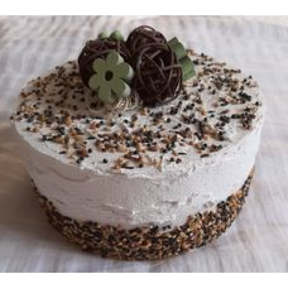Als je van vogeltjes houdt dan is dit de perfecte decoratieve taart die je huis kan opfleuren. Een namaak vogelzaad slagroomtaart.