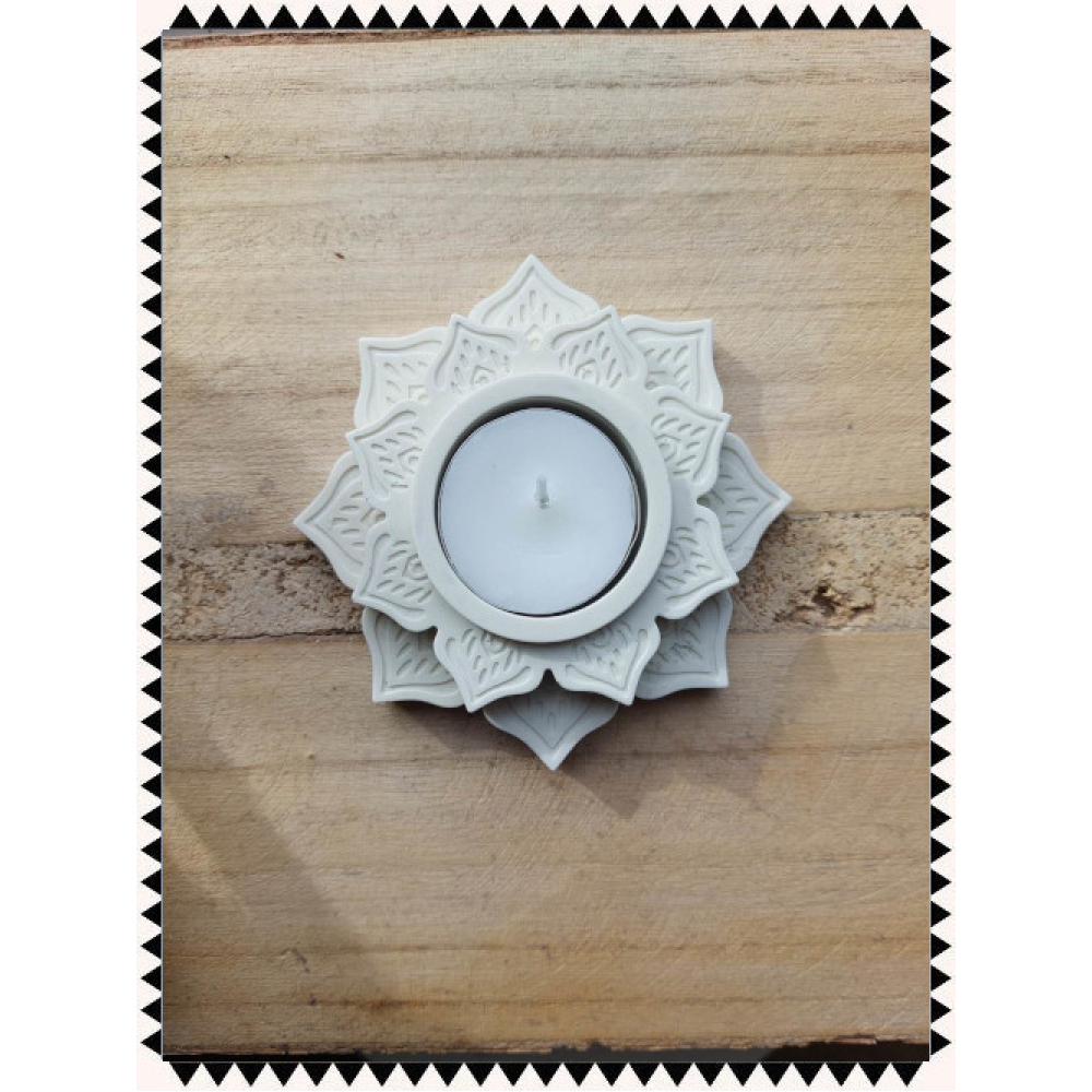 Een waxinelichthouder in de vorm van een lotusbloem.