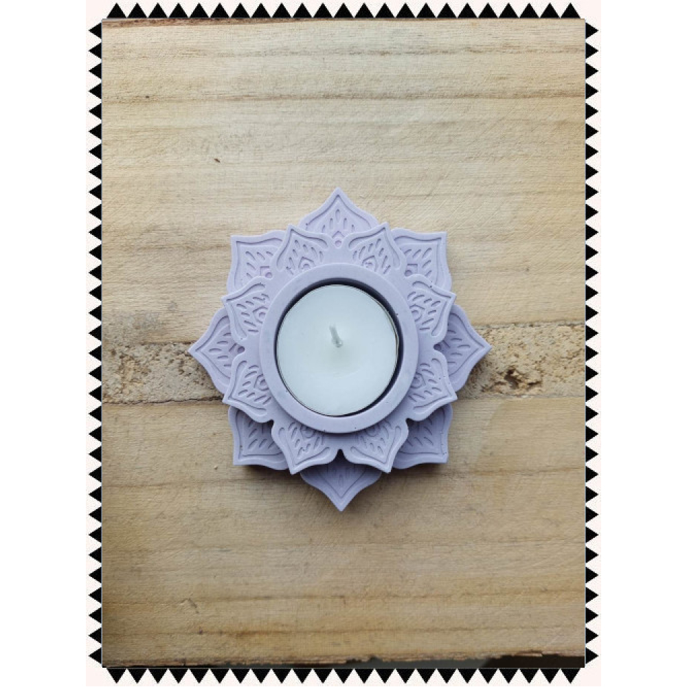 Een waxinelichthouder in de vorm van een lotusbloem.