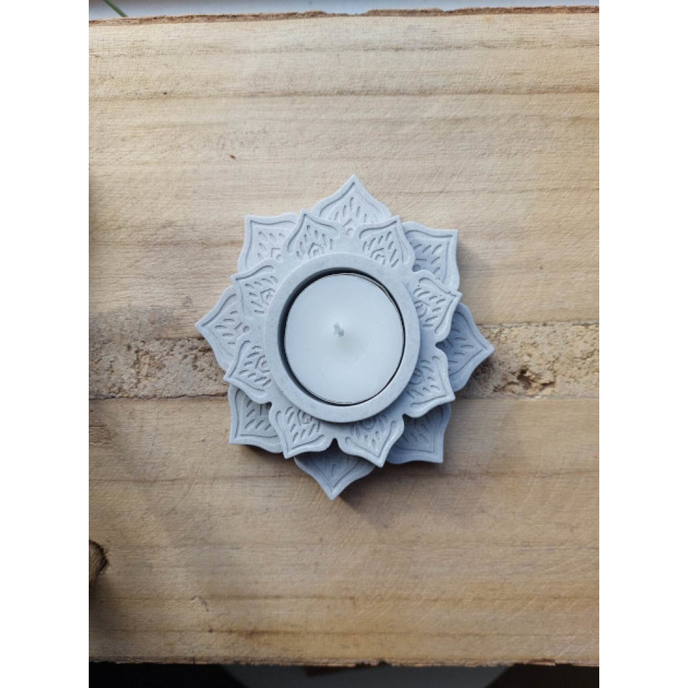 Waxinelichthouder lotusbloem grijs